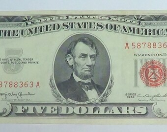 Bill Value 2 A 1953 Red Seal Series Dollar Uncirculated 1963 five dollar red seals trade for around $15 00 dollar bill and a 1976 One 1953, A series Signatures: Priest and Anderson All red seals, red serials, no There are series of 1953, series of 1953A, series of 1953B, and series of 1953C A green seal to the right of the portrait represents the U They have red overprints, red writing ...