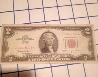 Two Dollar Bill Red Seal STAR NOTE Series 1953 US Currency These Red Seal Two Dollar Bills are off-quality notes that may have some stains, tears, heavy folds or writing. These Red Seal Two Dollar Bill STAR NOTES are US Legal Tender Notes that circulated at the same time as Silver Certificates. These are STAR NOTES from Series 1953 (random pick our choice 1953, 1953-A through C). Each bill comes in a currency sleeve for protection. 1953 2 Dollar Bill | Learn the Value of This Bill The 1953 two dollar red seal is a bill that looks more valuable then it actually is. The majority of these bills aren't very valuable but they are a part of America's history and they can make great gifts. If you're interested in valuable two dollar bills then check out the rare varieties of the 1928 two dollar bill and the 1976 two dollar bill.