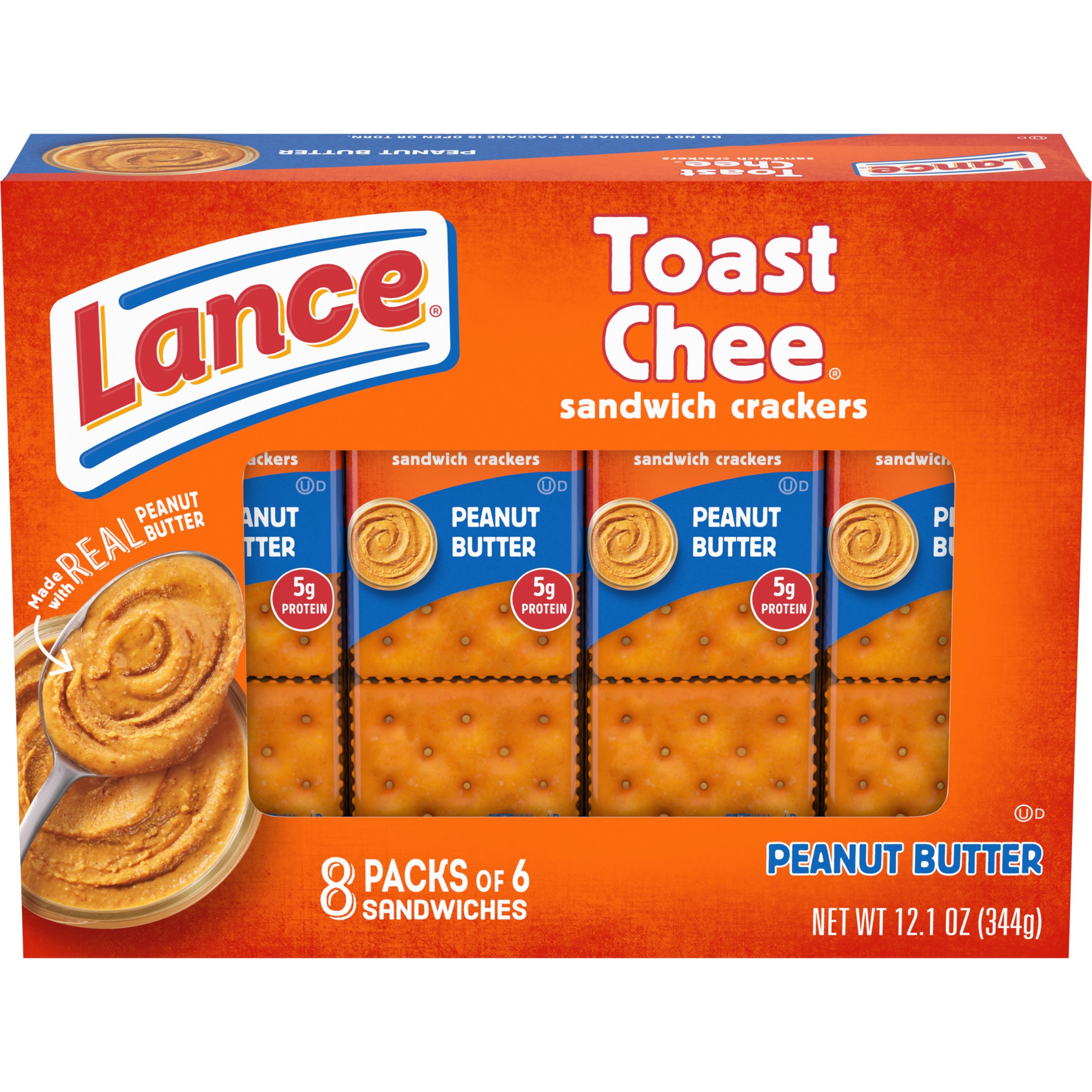 Lance Toast Chee Peanut Butter Sandwich Crackers 8 ct. $3.21 ($0.41/ct) Icon details. Product description. Fresh from Lance's bakery to your pantry, Lance Toast Chee Real Peanut Butter Sandwich Crackers are a snack the entire family will enjoy. Lance Toast Chee Sandwich Crackers combine real peanut butter with two toasted, baked crackers that fill you up and keep you going.