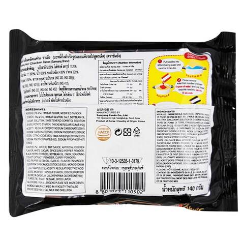 Chicken ramen noodles nutrition label