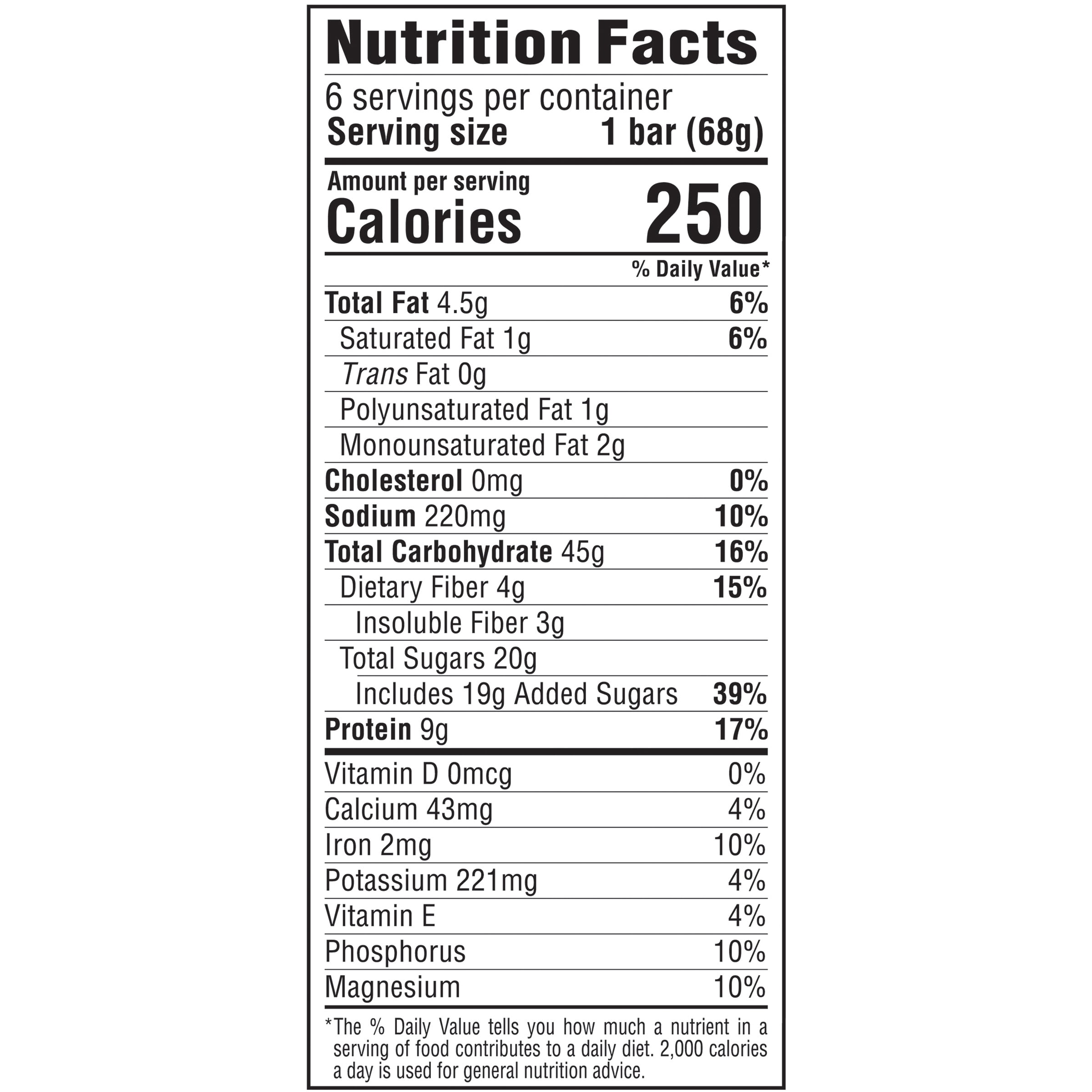 Food Label Analysis Completed. .docx - Food Label Analysis Instructions ... Hence 1 granola bar or 0.75oz should provide the nutrients listed. 1 Clif Bar or 68 grams of bar is equivalent to 2.4 ounces. The bar contains 45 grams of carbohydrates, 9 grams of protein, 5 grams of fat and 250 calories.