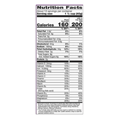 Kix Nutrition Facts - Eat This Much Kix Cereals ready-to-eat, general mills Find on Amazon Percent calories from... Quick stats 107.1 Calories 24.8g Carbs (22.2g net carbs) 1g Fat 2.3g Protein Estimated $0.26 I want to eat calories in I like to eat Note: Any items purchased after clicking our Amazon buttons will give us a little referral bonus. If you do click them, thank you! Kix Cereal Nutrition Label - This Nutrition Web08.08.2022 · Learn more information about kix cereal nutrition label. In this article we'll discuss kix cereal nutrition label. THIS IS NOT THE END OF THE ARTICLE Support … Nutrition and ingredients - General Mills Our nutrition experts focus on a variety of areas ranging from nutrition density, personalized nutrition, whole grain, cereal, yogurt, dietary intake research and beyond. Global Health Reporting Over the years, we have made significant progress reformulating products by increasing positive nutrients, like whole grain, fiber and iron, and ...
