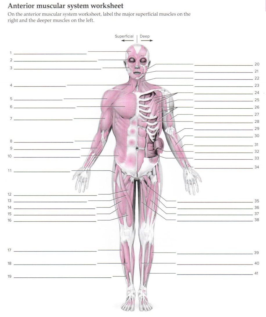Label the muscular system worksheet. Skeletal System Quizzes - GetBodySmart Quizzes on human skeletal system anatomy, bone anatomy, and bone markings. Visit Kenhub for more skeletal system quizzes. Start now! Label the heart — Science Learning Hub 16.6.2017 · In this interactive, you can label parts of the human heart. Drag and drop the text labels onto the boxes next to the heart diagram. If you want to redo an answer, click on the box and the answer will go back to the top so you can move it to another box. If you want to check your answers, use the Reset Incorrect button. Your Muscles (for Kids) - Nemours KidsHealth These muscles help to make up the musculoskeletal (say: mus-kyuh-low-SKEL-uh-tul) system — the combination of your muscles and your skeleton, or bones. Together, the skeletal muscles work with your bones to give your body power and strength. ... You may not think of it as a muscular body part, but your face has plenty of muscles. Free Skeletal System Worksheets and Printables - Homeschool … 21.10.2021 · Labeling the Bones. Labeling and diagramming the skeletal system is a great way to memorize the important parts of this system. We have created the Human Body Systems Labeling and Diagramming Worksheet as an instant download. This includes fill-in-the-blanks for your student to label the main bones on the body.