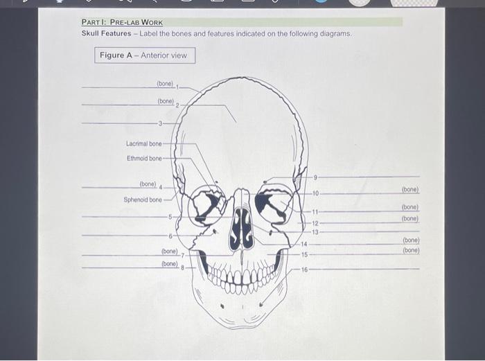 Label the anterior bones and features of the skull