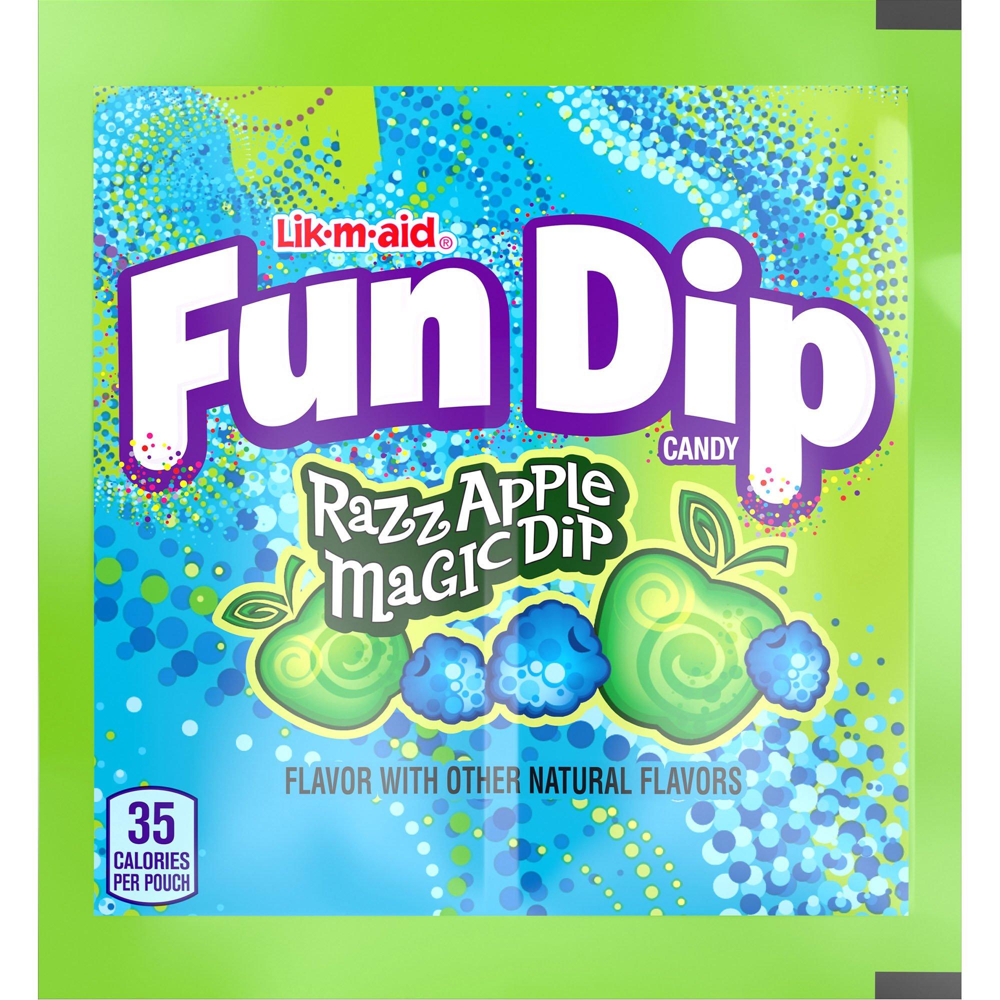 Fun Dip - Wikipedia Fun Dip is similar to fellow Wonka product Pixy Stix, but sold in small pouches, rather than paper or plastic straws. When called Lik-M-Aid, it consisted of 4 packets of flavored and colored sugar. When rebranded in the 1970s as Fun Dip, two edible candy sticks called "Lik-A-Stix" were added.