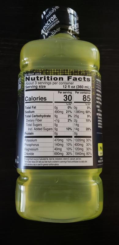 Fluid replacement, electrolyte solution (include PEDIALYTE ... Nutrition Facts. Fluid replacement, electrolyte solution (include PEDIALYTE), 1 cup (8 fl oz). Protein (g). 0. Total lipid (fat) (g). Pedialyte AdvancedCare - Abbott Nutrition PEDIALYTE ADVANCEDCARE is an advanced rehydration solution specially formulated with PreActiv ® ...