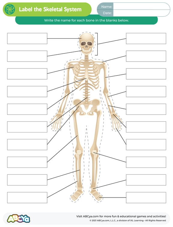 Label the Skeleton — Printable Worksheet - PurposeGames.com Label the Skeleton — Printable Worksheet Download and print this quiz as a worksheet. You can move the markers directly in the worksheet. This is a printable worksheet made from a PurposeGames Quiz. To play the game online, visit Label the Skeleton Download Printable Worksheet Please note! Free Printable Label A Skeleton Worksheet For Kids - Pinterest Sep 26, 2018 - This label a skeleton worksheet for kids is perfect for children learning about the human body or for an educational Halloween activity kids ...